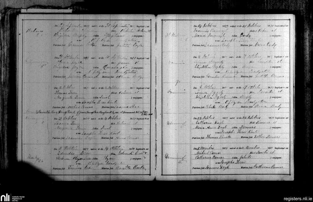 St. Mullins; County of Carlow, Wexford; Diocese of Kildare and Leighlin. Baptisms, Sep. 1877 to Nov. 1877