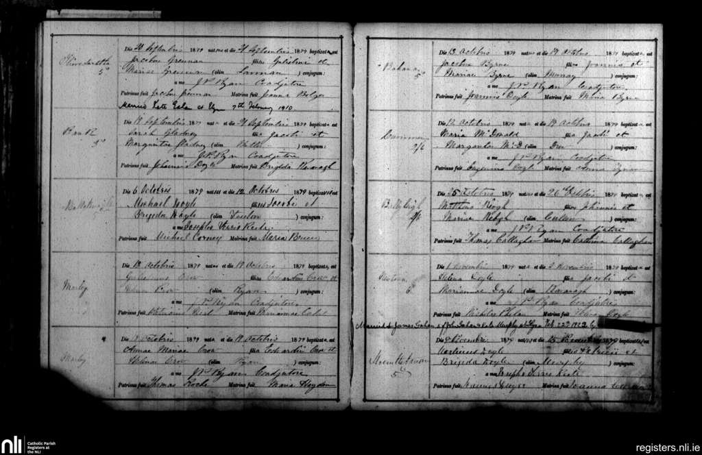 St. Mullins; County of Carlow, Wexford; Diocese of Kildare and Leighlin. Baptisms, Sep. 1879 to Nov. 1879