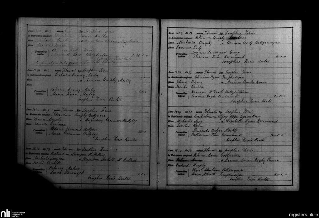 St. Mullins; County of Carlow, Wexford; Diocese of Kildare and Leighlin. Marriages, June 1873 to Feb. 1874