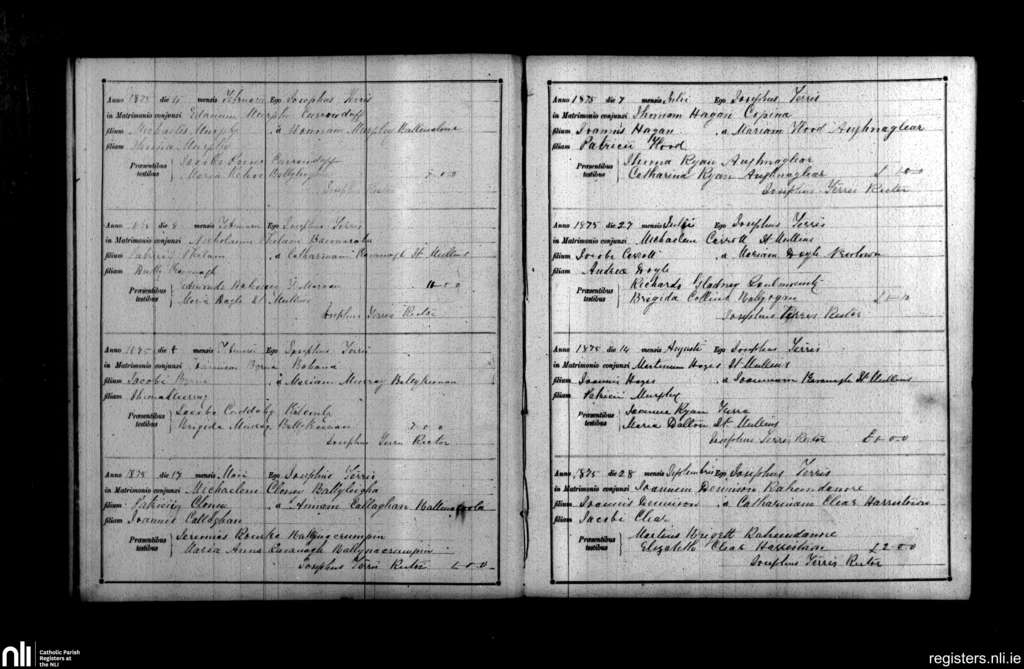 St. Mullins; County of Carlow, Wexford; Diocese of Kildare and Leighlin. Marriages, Feb. 1875 to Sep. 1875