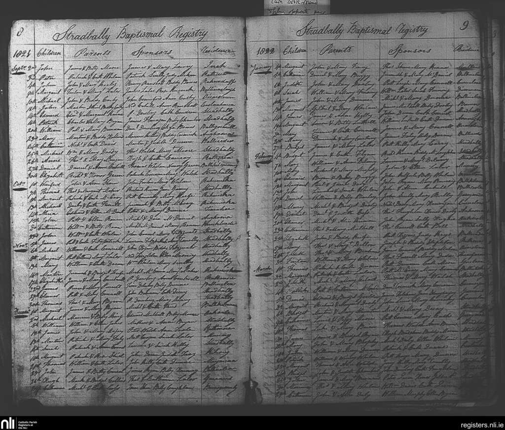 Stradbally; County of Laois; Diocese of Kildare and Leighlin. Baptisms, Sep. 1821 to Mar. 1822