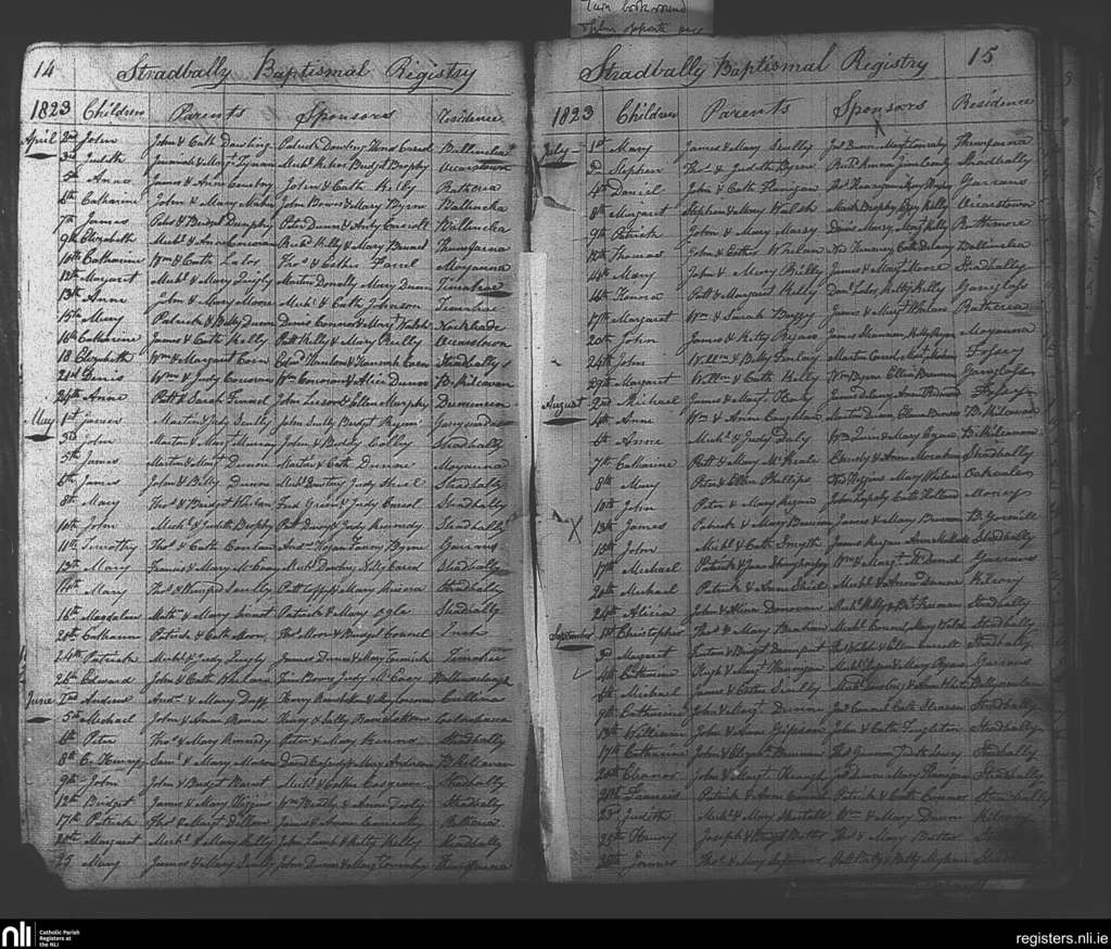 Stradbally; County of Laois; Diocese of Kildare and Leighlin. Baptisms, Apr. 1823 to Sep. 1823