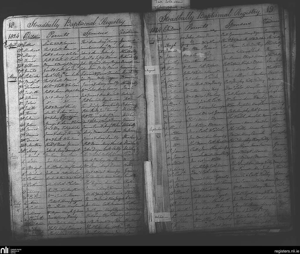 Stradbally; County of Laois; Diocese of Kildare and Leighlin. Baptisms, Apr. 1824 to Oct. 1824