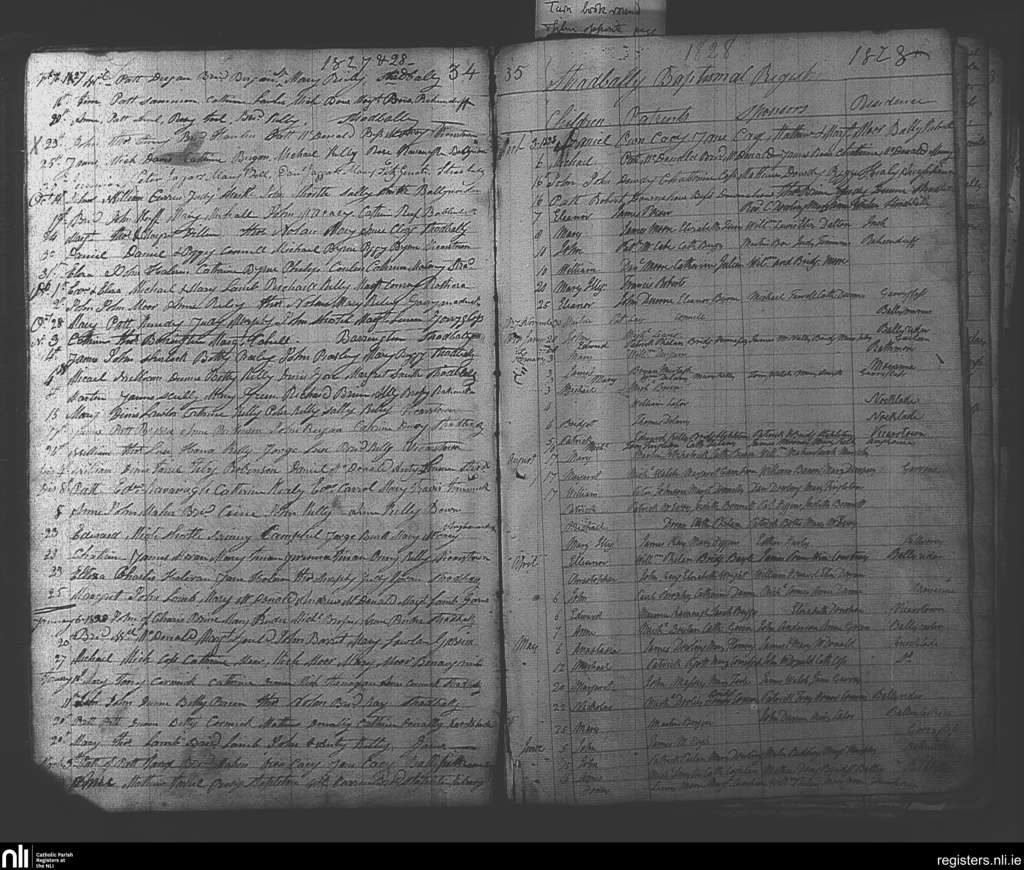 Stradbally; County of Laois; Diocese of Kildare and Leighlin. Baptisms, Sep. 1827 to Aug. 1828