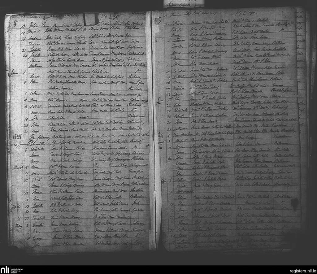 Stradbally; County of Laois; Diocese of Kildare and Leighlin. Baptisms, Jan. 1828 to June 1829