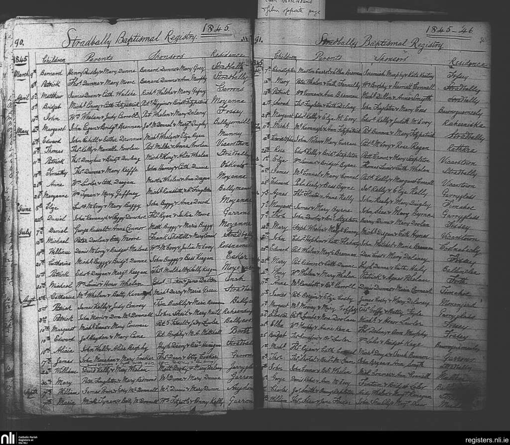 Stradbally; County of Laois; Diocese of Kildare and Leighlin. Baptisms, Marriages, Mar. 1845 to June 1912