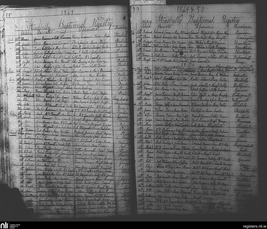 Stradbally; County of Laois; Diocese of Kildare and Leighlin. Baptisms, Apr. 1849 to May 1850
