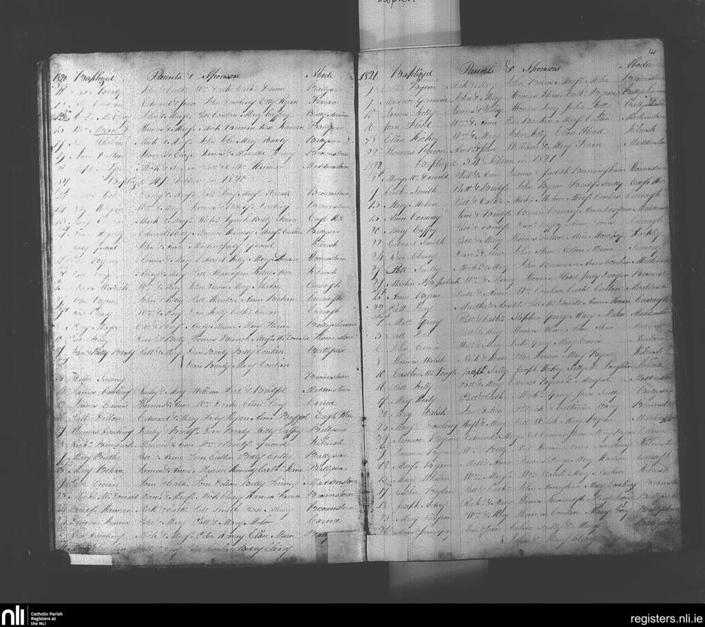 Suncroft; County of Kildare; Diocese of Kildare and Leighlin. Baptisms, Nov. 1820 to Apr. 1822
