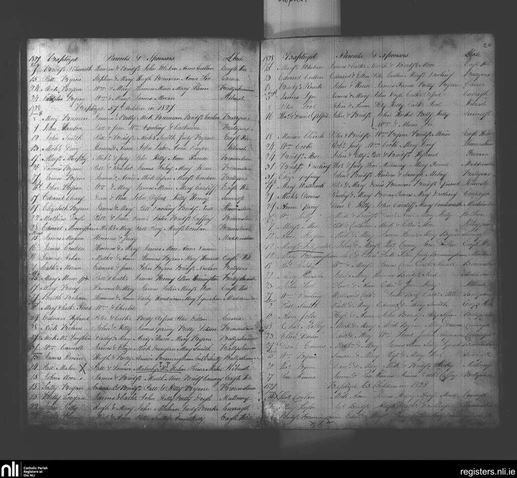 Suncroft; County of Kildare; Diocese of Kildare and Leighlin. Baptisms, Dec. 1827 to Jan. 1829
