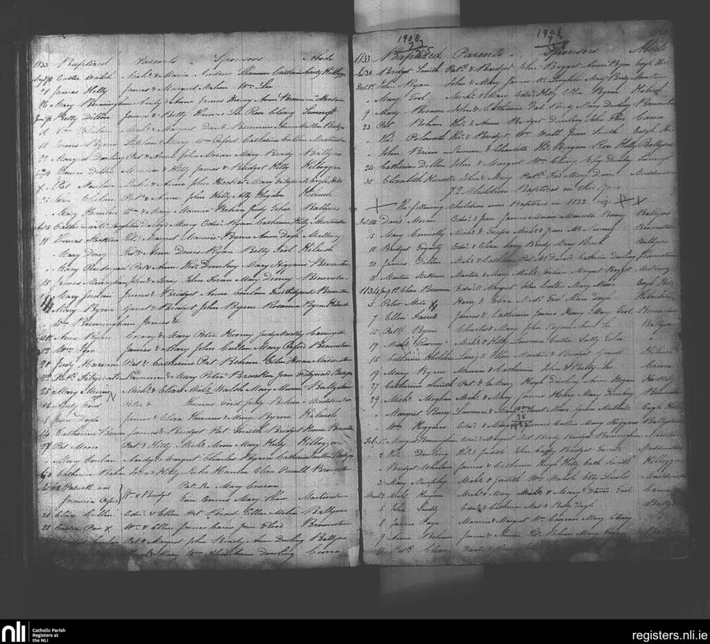 Suncroft; County of Kildare; Diocese of Kildare and Leighlin. Baptisms, May 1833 to Mar. 1834