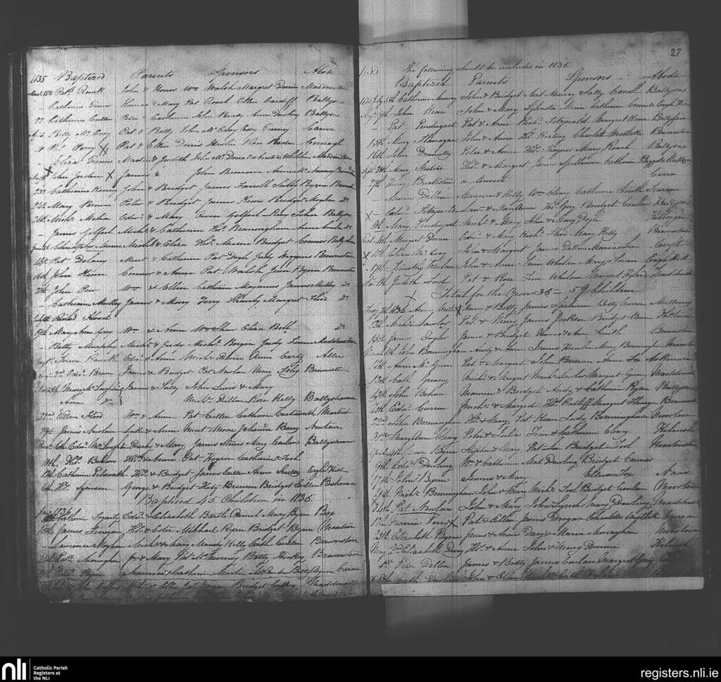 Suncroft; County of Kildare; Diocese of Kildare and Leighlin. Baptisms, Mar. 1835 to May 1836