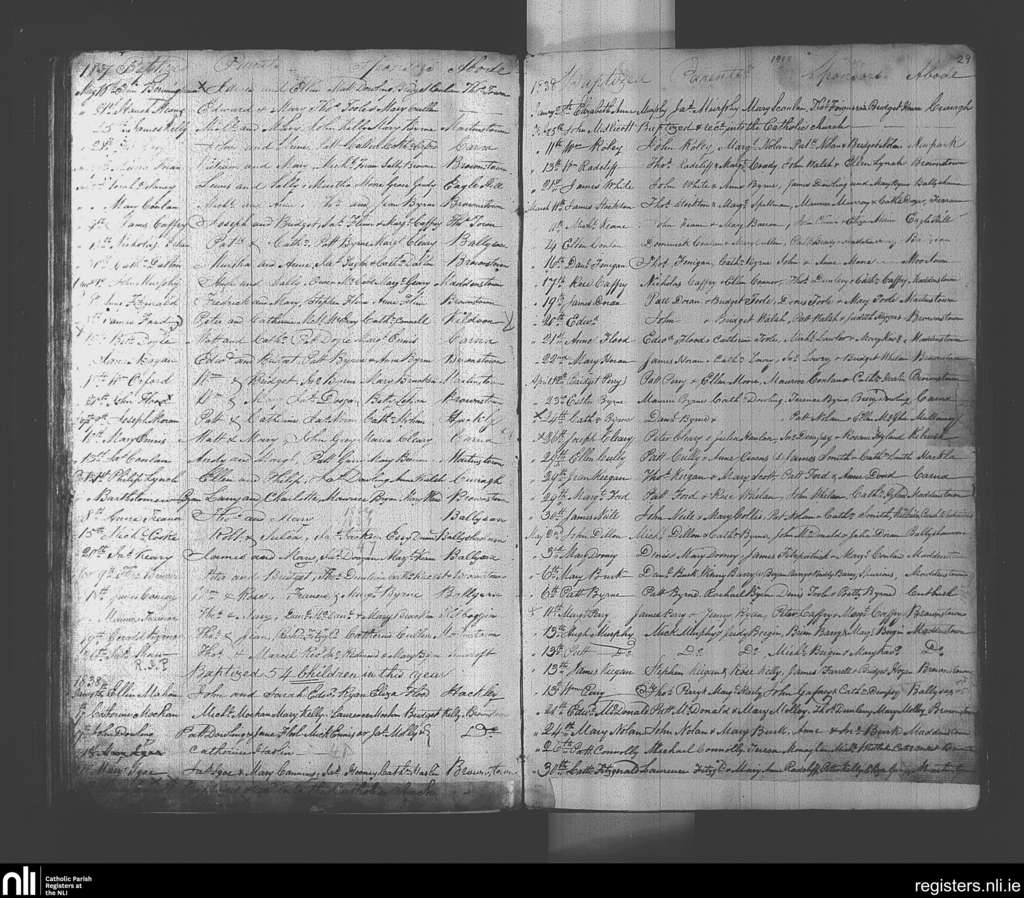 Suncroft; County of Kildare; Diocese of Kildare and Leighlin. Baptisms, May 1837 to May 1838