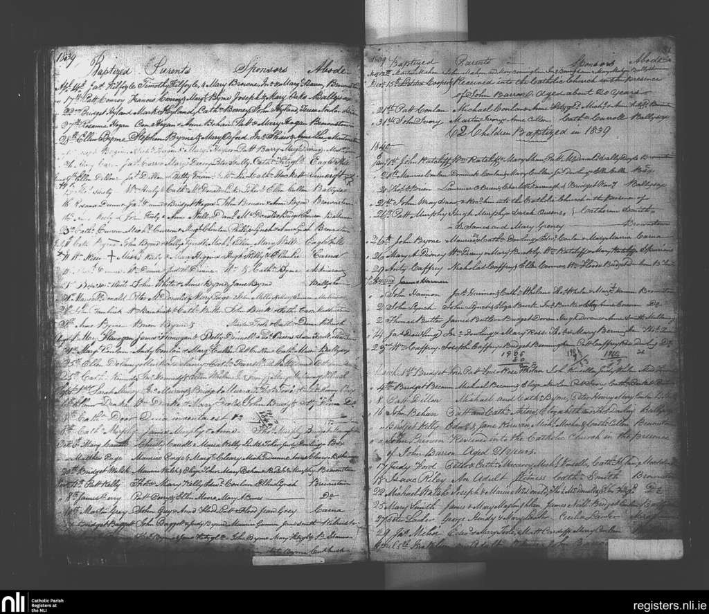 Suncroft; County of Kildare; Diocese of Kildare and Leighlin. Baptisms, Apr. 1839 to Apr. 1840