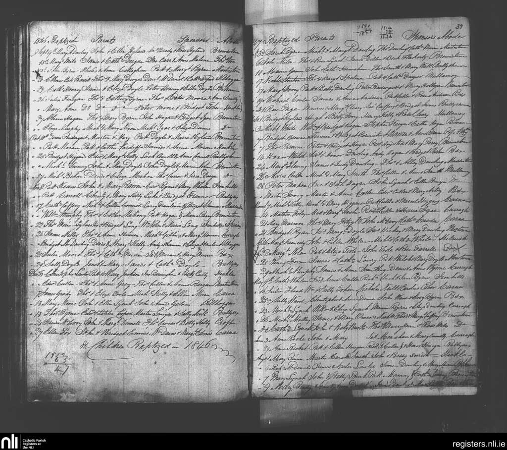 Suncroft; County of Kildare; Diocese of Kildare and Leighlin. Baptisms, Sep. 1846 to Aug. 1847