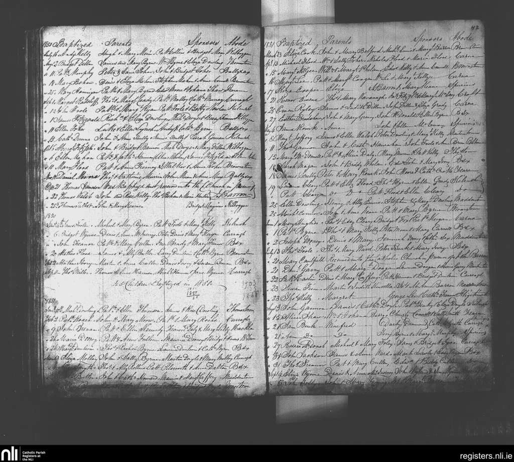 Suncroft; County of Kildare; Diocese of Kildare and Leighlin. Baptisms, July 1850 to Sep. 1851