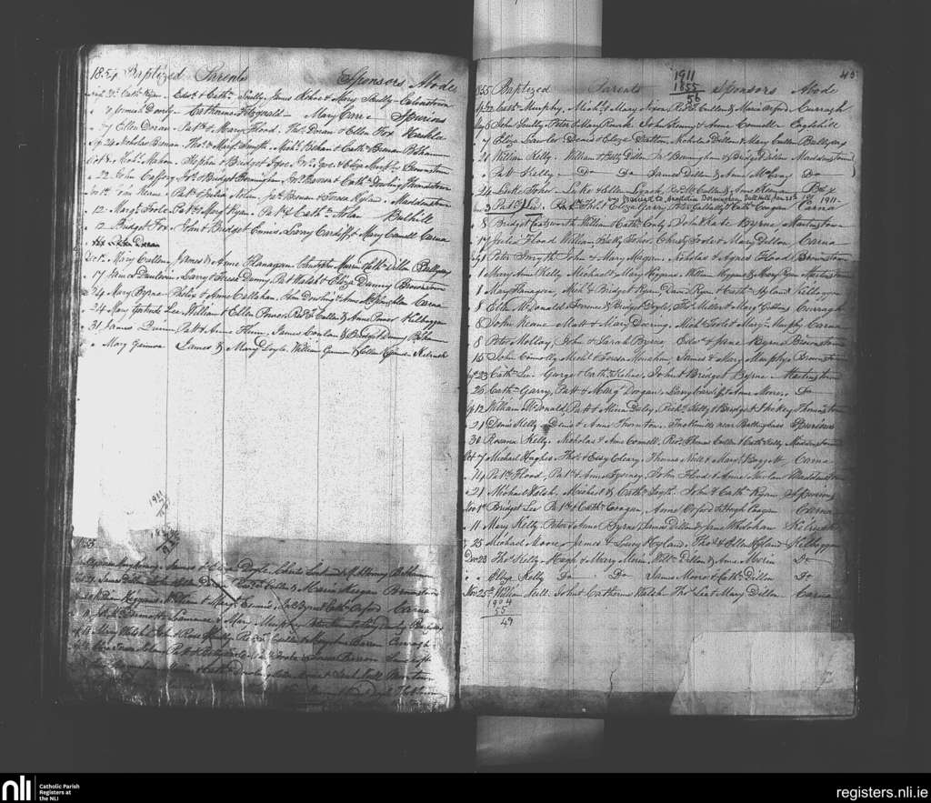 Suncroft; County of Kildare; Diocese of Kildare and Leighlin. Baptisms, Marriages, Aug. 1854 to Jan. 1911