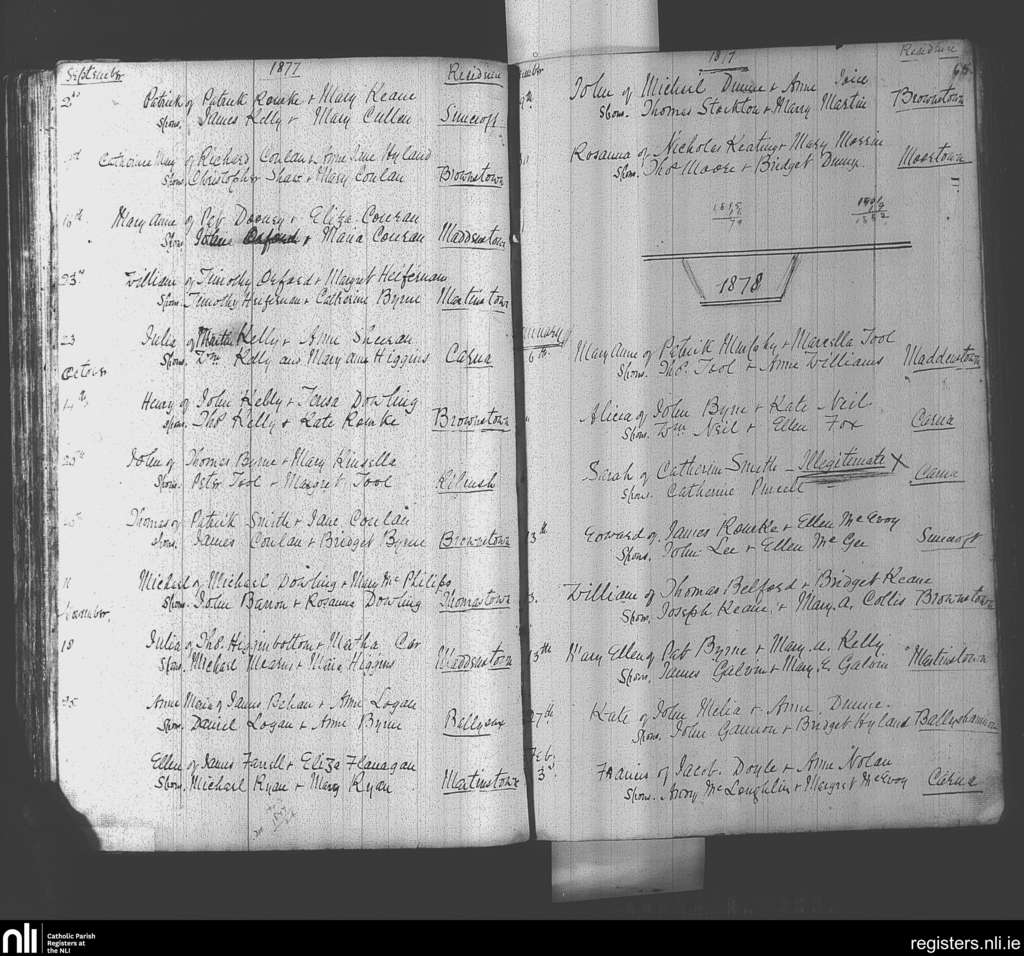Suncroft; County of Kildare; Diocese of Kildare and Leighlin. Baptisms, Sep. 1877 to Feb. 1878