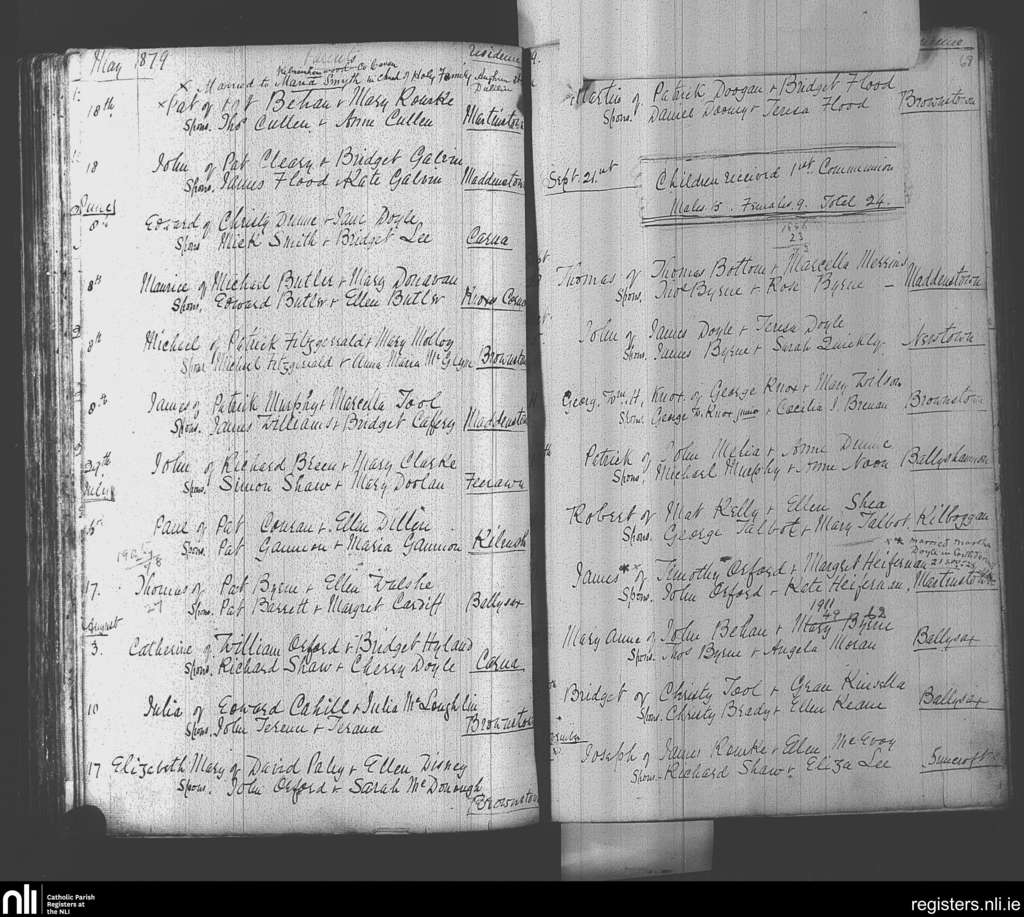 Suncroft; County of Kildare; Diocese of Kildare and Leighlin. Baptisms, Marriages, May 1879 to Nov. 1923