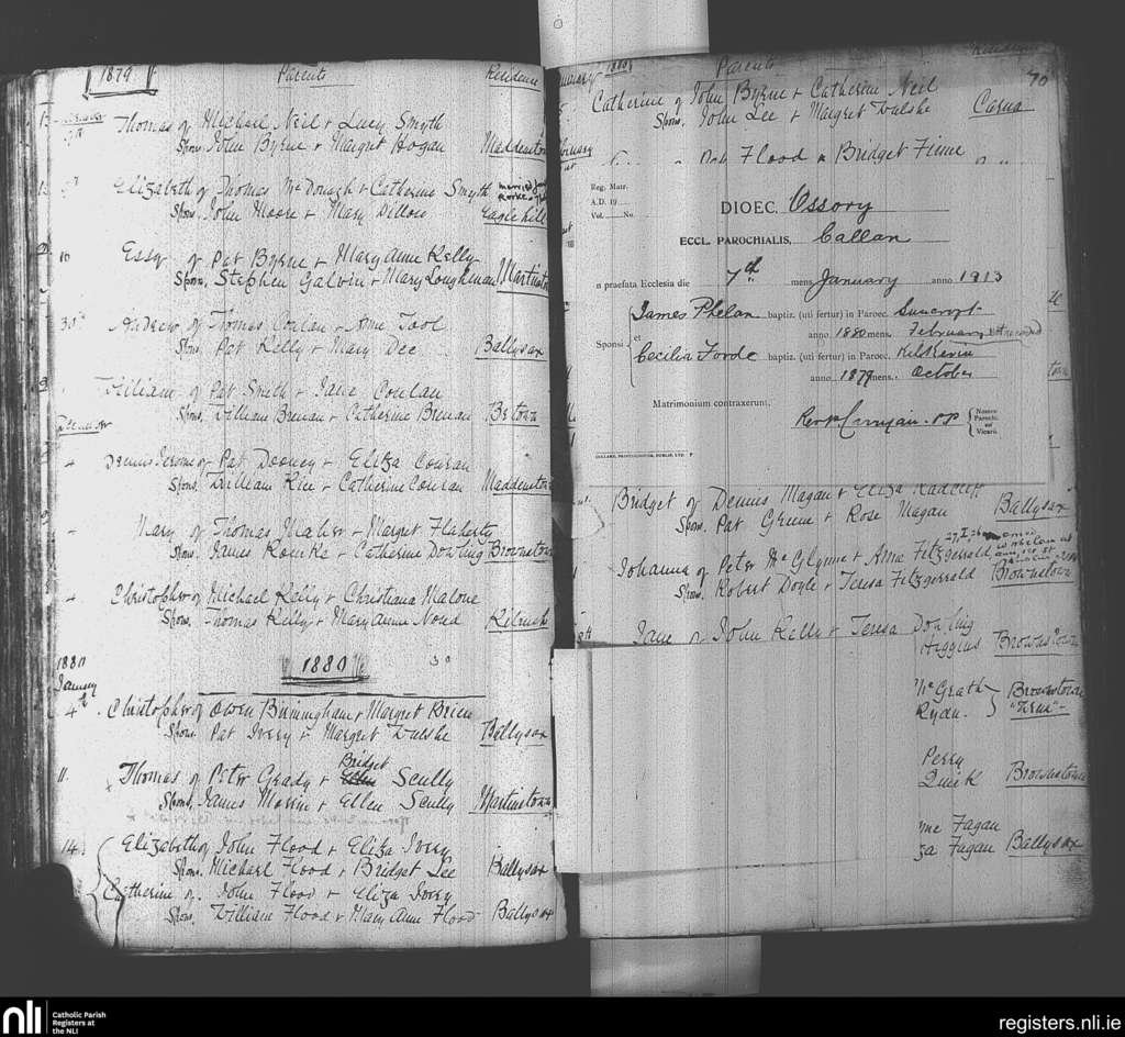 Suncroft; County of Kildare; Diocese of Kildare and Leighlin. Baptisms, Marriages, Nov. 1879 to Jan. 1913