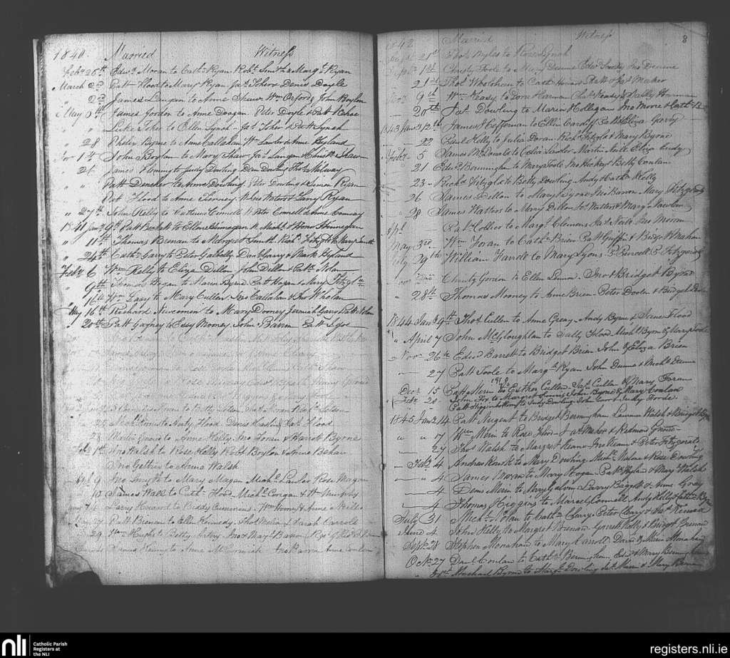 Suncroft; County of Kildare; Diocese of Kildare and Leighlin. Marriages, Feb. 1840 to Oct. 1845