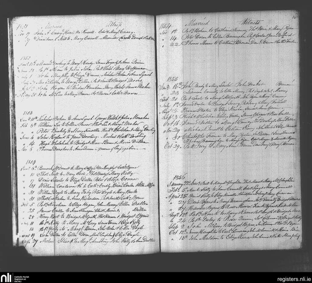 Suncroft; County of Kildare; Diocese of Kildare and Leighlin. Marriages, Nov. 1851 to Oct. 1856
