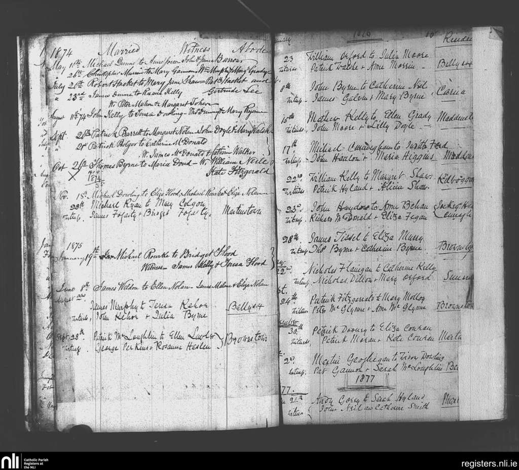 Suncroft; County of Kildare; Diocese of Kildare and Leighlin. Marriages, May 1874 to Jan. 1877