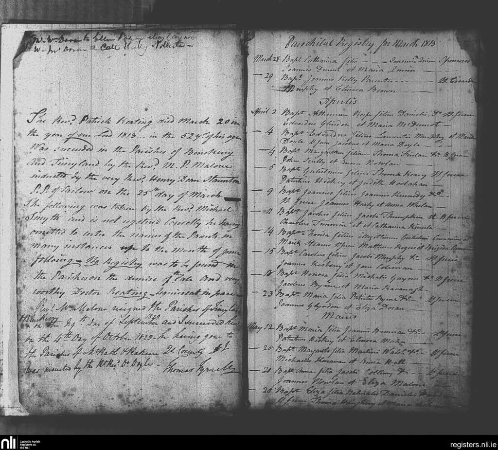 Tinryland; County of Carlow; Diocese of Kildare and Leighlin. Baptisms, Mar. 1813 to May 1813