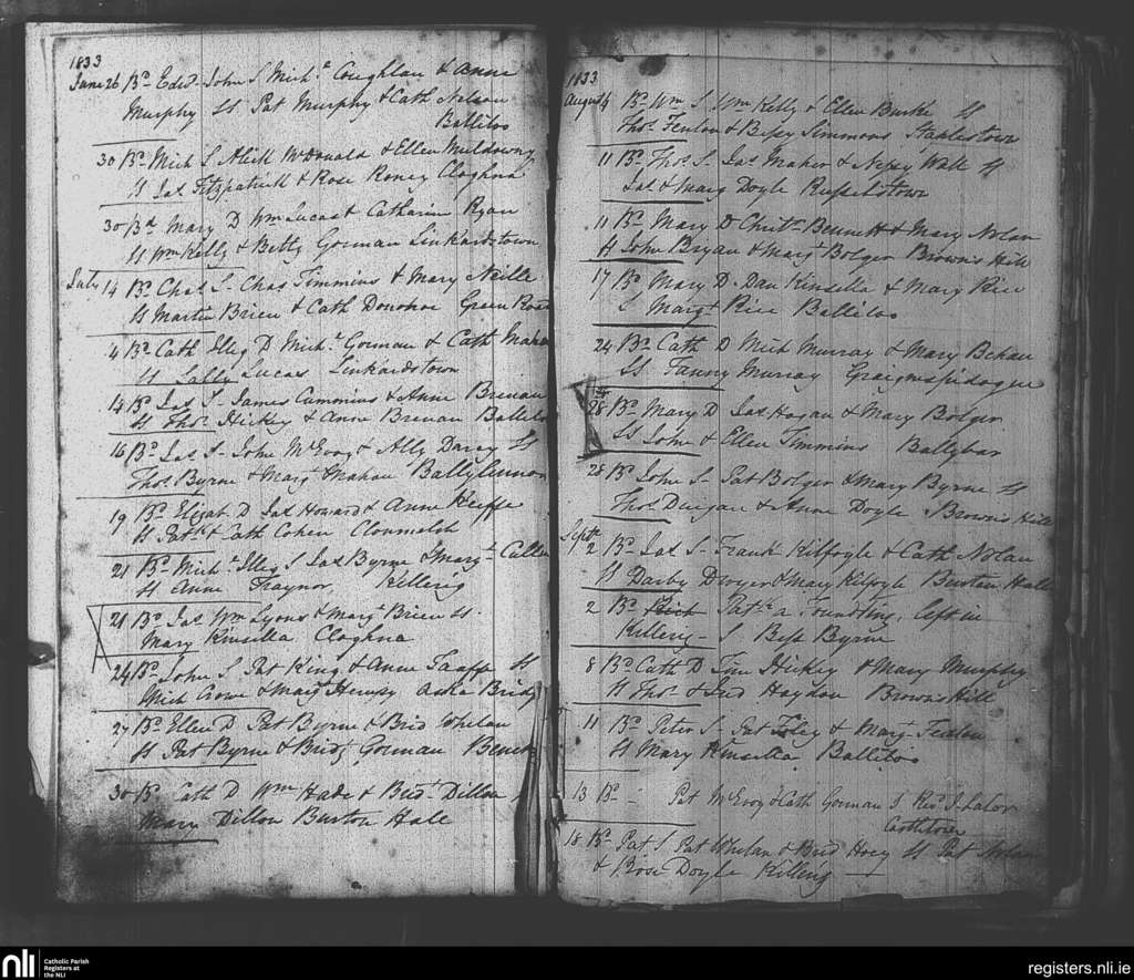 Tinryland; County of Carlow; Diocese of Kildare and Leighlin. Baptisms, June 1833 to Sep. 1833