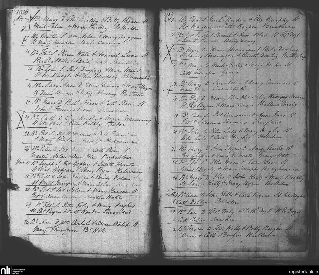 Tinryland; County of Carlow; Diocese of Kildare and Leighlin. Baptisms, Nov. 1833 to Feb. 1834