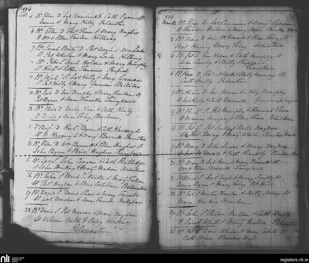 Tinryland; County of Carlow; Diocese of Kildare and Leighlin. Baptisms, Feb. 1834 to Mar. 1834