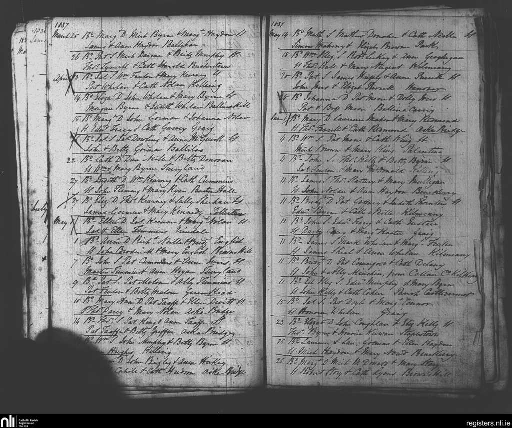 Tinryland; County of Carlow; Diocese of Kildare and Leighlin. Baptisms, Mar. 1837 to June 1837
