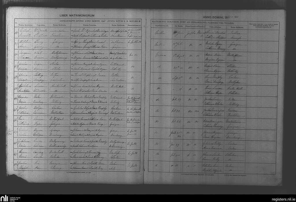 Tinryland; County of Carlow; Diocese of Kildare and Leighlin. Marriages, June 1861 to Feb. 1862