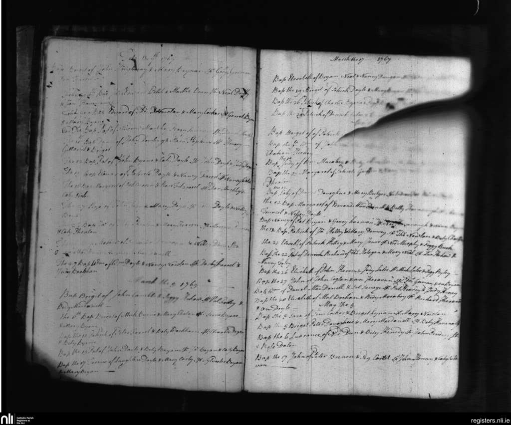 Tullow; County of Carlow; Diocese of Kildare and Leighlin. Baptisms, Feb. 1767 to May 1767
