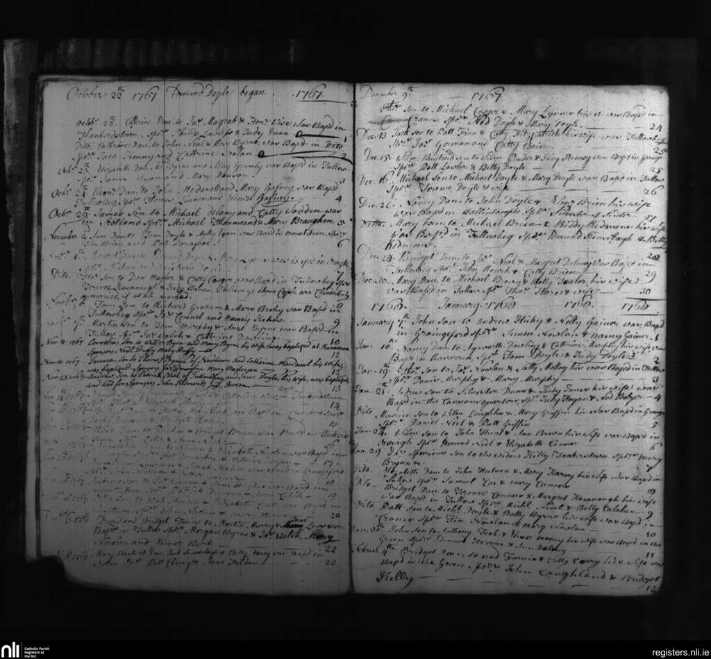 Tullow; County of Carlow; Diocese of Kildare and Leighlin. Baptisms, Oct. 1767 to Feb. 1768