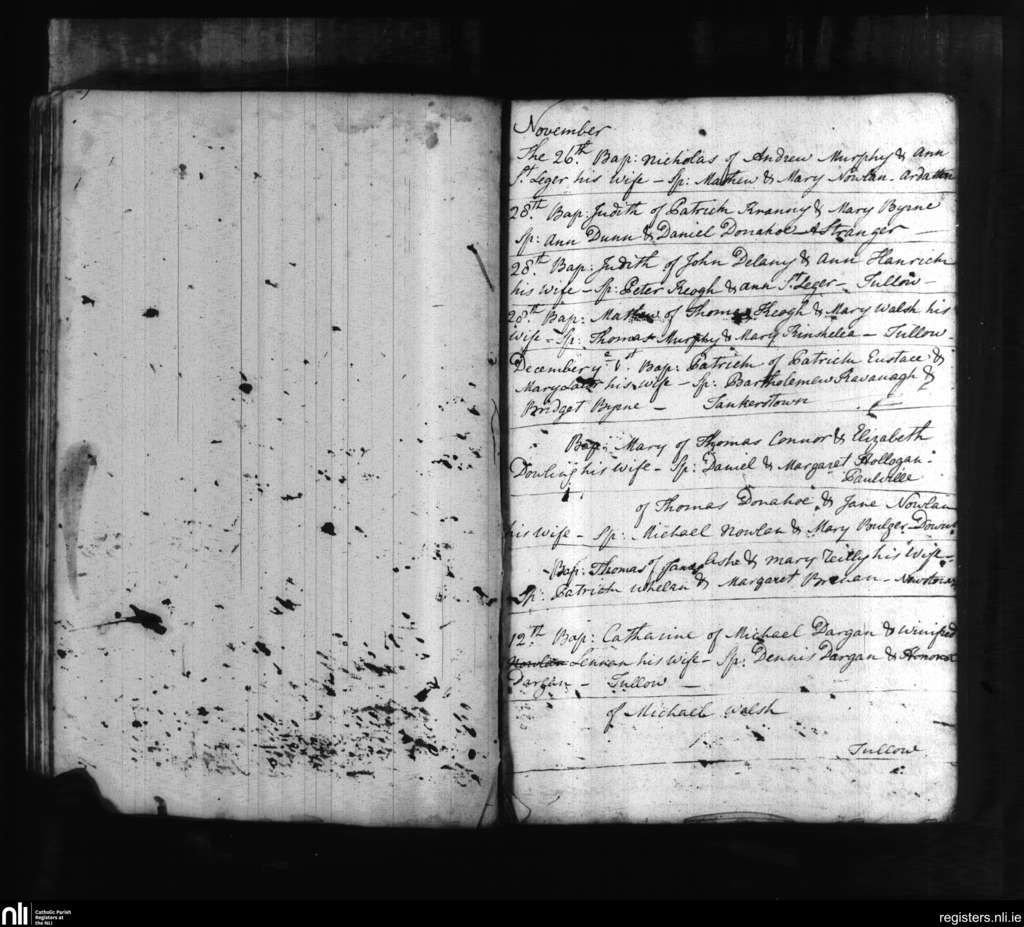 Tullow; County of Carlow; Diocese of Kildare and Leighlin. Baptisms, Nov. 1775 to Dec. 1775