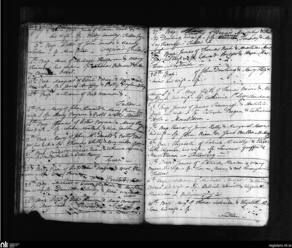 Tullow; County of Carlow; Diocese of Kildare and Leighlin. Baptisms, July 1776 to Aug. 1776