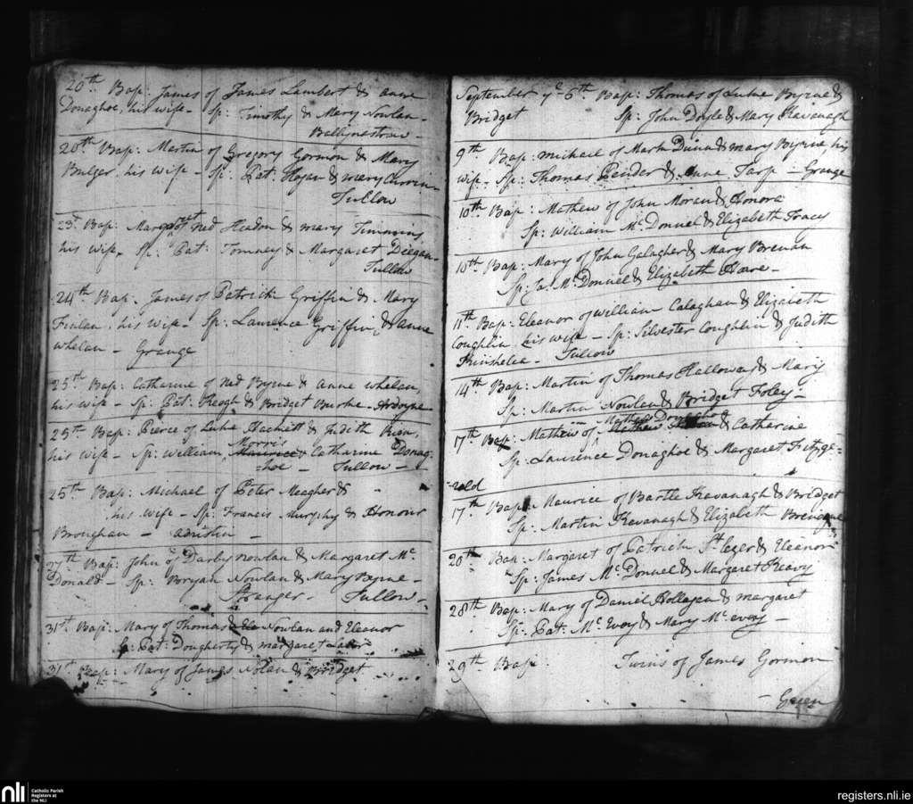 Tullow; County of Carlow; Diocese of Kildare and Leighlin. Baptisms, Aug. 1776 to Sep. 1776