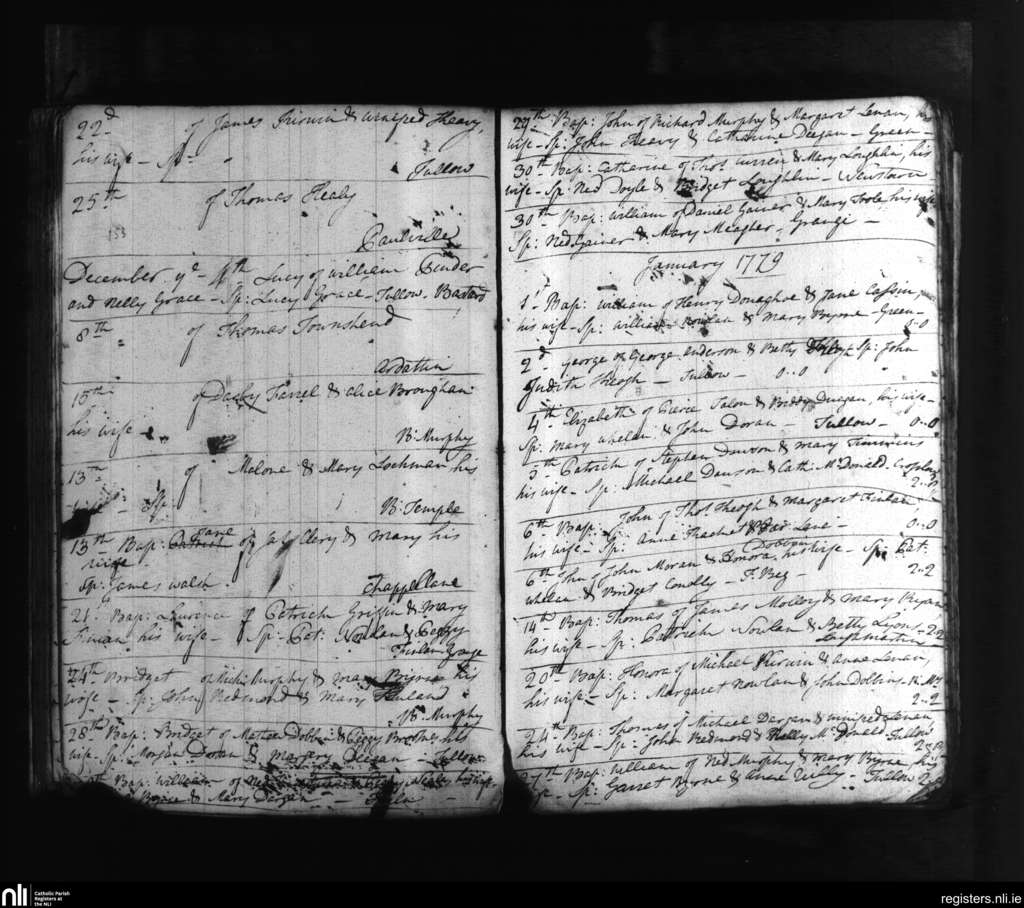 Tullow; County of Carlow; Diocese of Kildare and Leighlin. Baptisms, Nov. 1778 to Jan. 1779