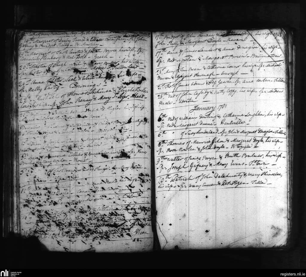 Tullow; County of Carlow; Diocese of Kildare and Leighlin. Baptisms, Nov. 1780 to Jan. 1781