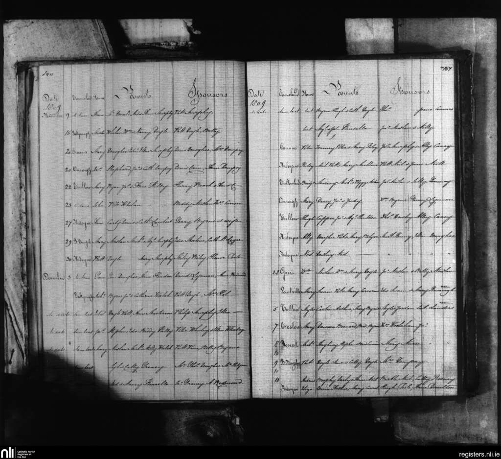 Tullow; County of Carlow; Diocese of Kildare and Leighlin. Baptisms, Nov. 1809 to Dec. 1809