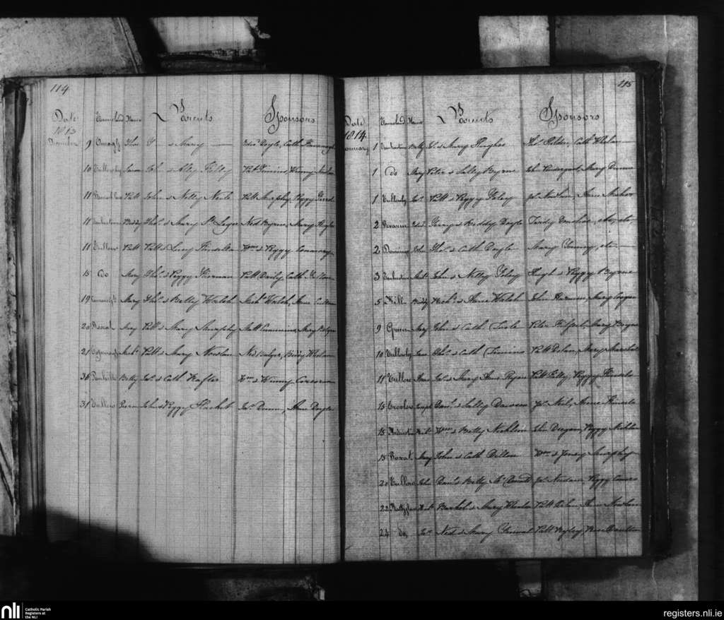 Tullow; County of Carlow; Diocese of Kildare and Leighlin. Baptisms, Dec. 1813 to Jan. 1814