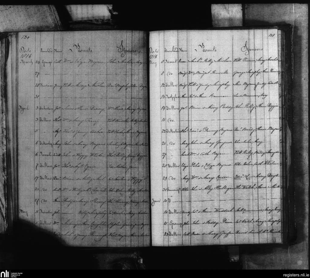 Tullow; County of Carlow; Diocese of Kildare and Leighlin. Baptisms, Mar. 1816 to June 1816