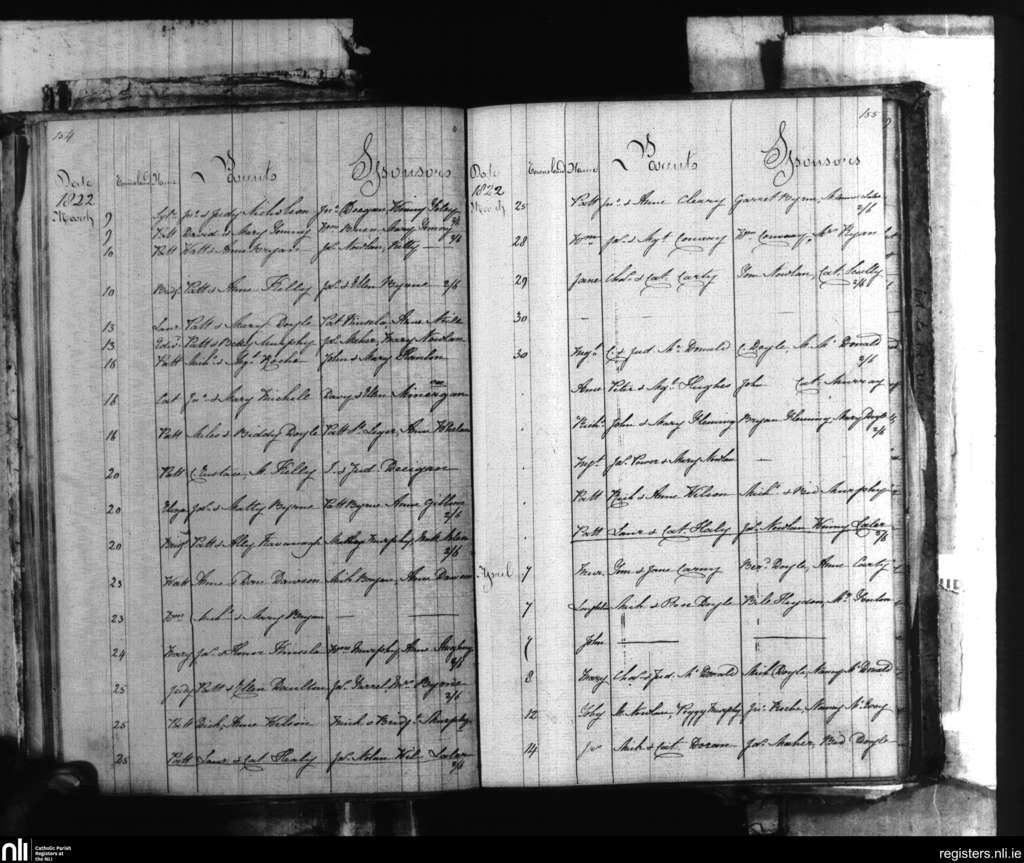 Tullow; County of Carlow; Diocese of Kildare and Leighlin. Baptisms, Mar. 1822 to Apr. 1822