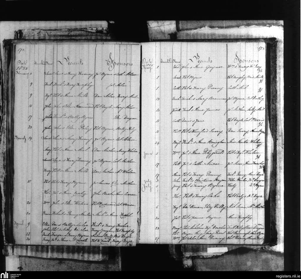 Tullow; County of Carlow; Diocese of Kildare and Leighlin. Baptisms, Feb. 1825 to July 1825