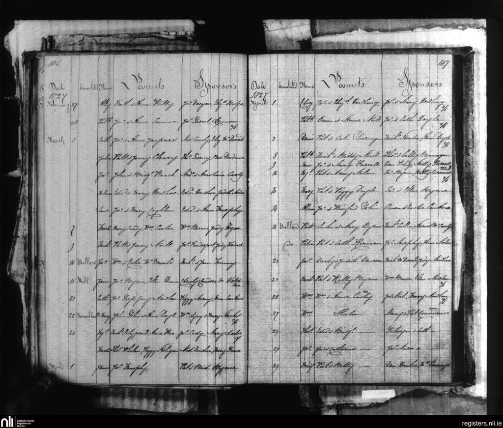 Tullow; County of Carlow; Diocese of Kildare and Leighlin. Baptisms, Feb. 1827 to Apr. 1827
