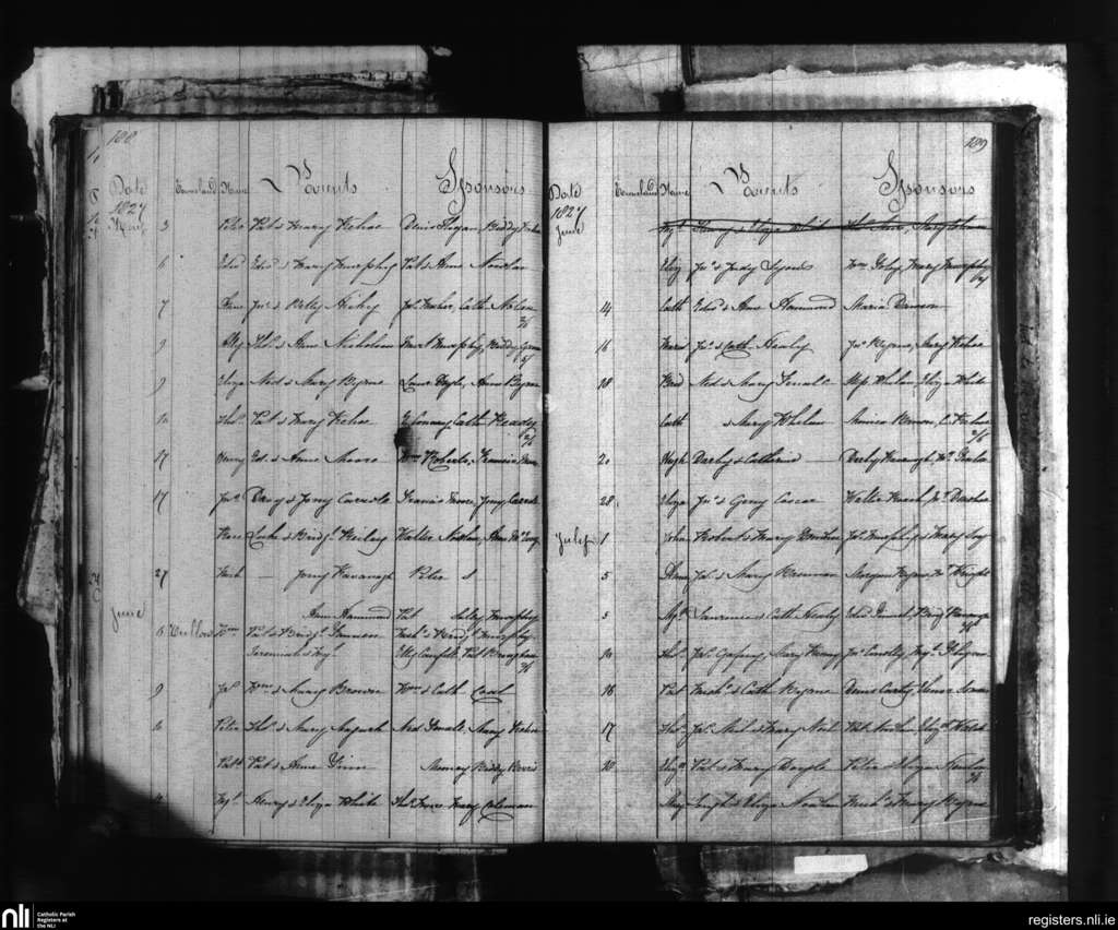 Tullow; County of Carlow; Diocese of Kildare and Leighlin. Baptisms, May 1827 to July 1827