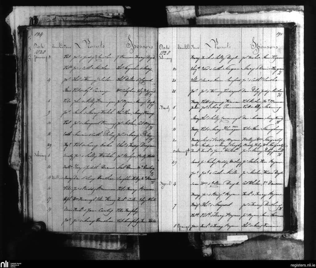Tullow; County of Carlow; Diocese of Kildare and Leighlin. Baptisms, Jan. 1828 to Apr. 1828