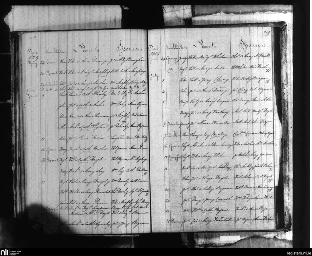 Tullow; County of Carlow; Diocese of Kildare and Leighlin. Baptisms, May 1829 to July 1829
