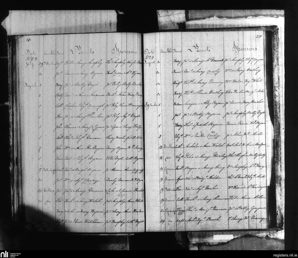 Tullow; County of Carlow; Diocese of Kildare and Leighlin. Baptisms, July 1829 to Sep. 1829