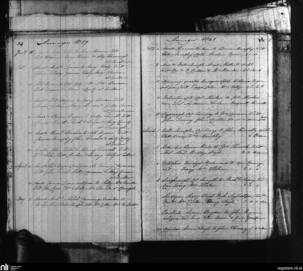 Tullow; County of Carlow; Diocese of Kildare and Leighlin. Marriages, Jan. 1819 to Mar. 1821